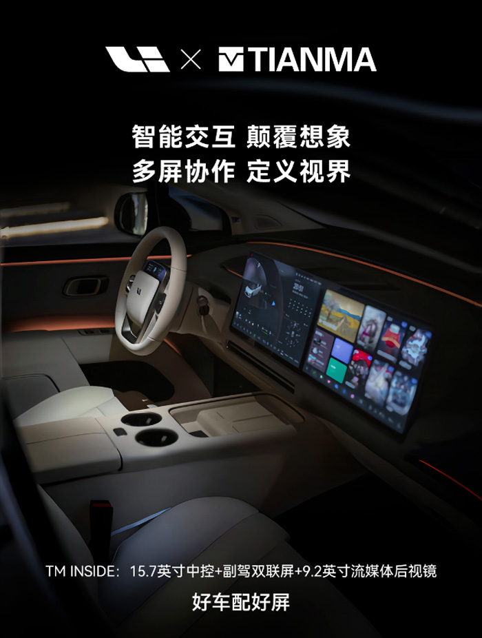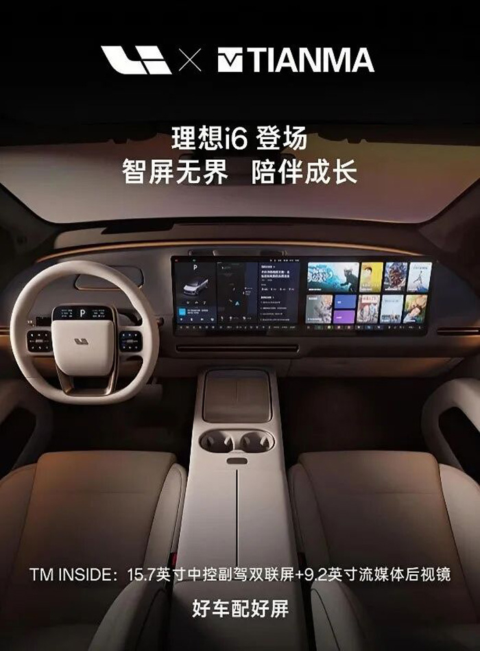 自与理想汽车建立合作以来,天马与理想汽车始终同行,共创共赢。凭借显示技术的创新升级,紧跟客户需求步伐,持续打造高性能车载显示产品与应用,赋能智能座舱深度进化,为用户带来极致视觉体验,在汽车智能化变革的浪潮里树立座舱新标杆,为中国高端新能源汽车产业的发展注入强劲动力。