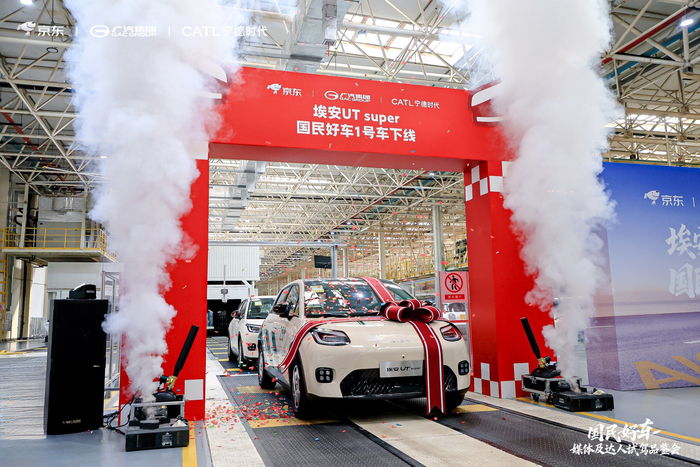 新浪科技讯 11月5日上午消息,今日,京东、广汽集团、宁德时代联合推出的“国民好车”埃安UT super 1号车正式迎来下线。这也是该款新车首次对外完整展示外观设计、制造工艺、电池技术及换电过程等细节。随着埃安UT super陆续下线,车辆预售、试驾也于当天全面启动,并将于11月9日正式发布。