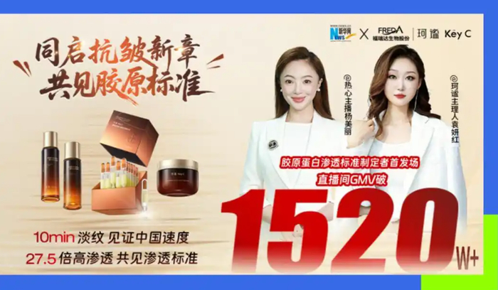 今年9月新华网与福瑞达旗下珂谧品牌联合打造的“共启抗皱新章・共鉴胶原标准”直播专场,客单价飙升至350元,超行业均值94%,单场GMV突破1520万元,明星产品1小时内售罄,最高同时在线人数超1万人。