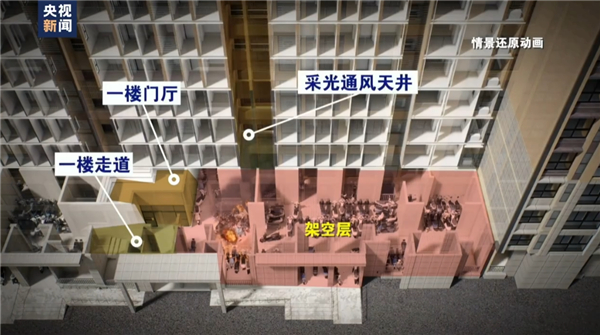 现场视频显示,事发当天凌晨 4:34,架空层传来乒乒乓乓的爆炸声,并伴有大量气体释放的声音。