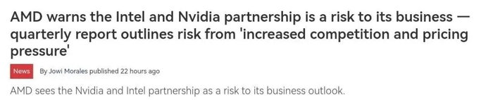 显然,英伟达与英特尔的合作将对AMD在PC和服务器市场带来更大的竞争压力。在2025年11月发布的季度报告中,AMD承认英特尔与英伟达的合作将对其业务前景构成风险,导致其产品面临更激烈的竞争和定价压力,对财务状况和利润产生实质性的不利影响。AMD指出,“这项新的对手合作伙伴关系已列入经济和战略风险部分,因为竞争对手之间可能增加竞争,并对我们业务产生不利影响的策略合作、收购和商业合作的实例。”