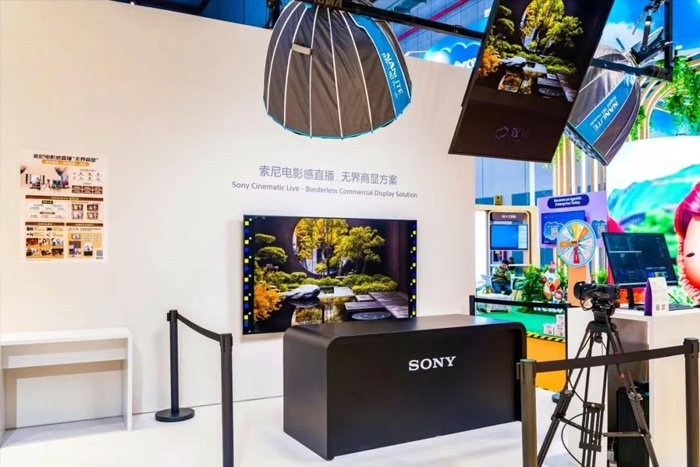 现场展示的空间现实显示屏(SRD)为专业创作者提供了裸眼3D内容创作与呈现工具。而索尼电影感直播-无界商显方案则融合了索尼相机、BRAVIA商用显示器与音频设备,为直播行业提供高画质、高稳定性的端到端解决方案,助力内容创作提质增效。