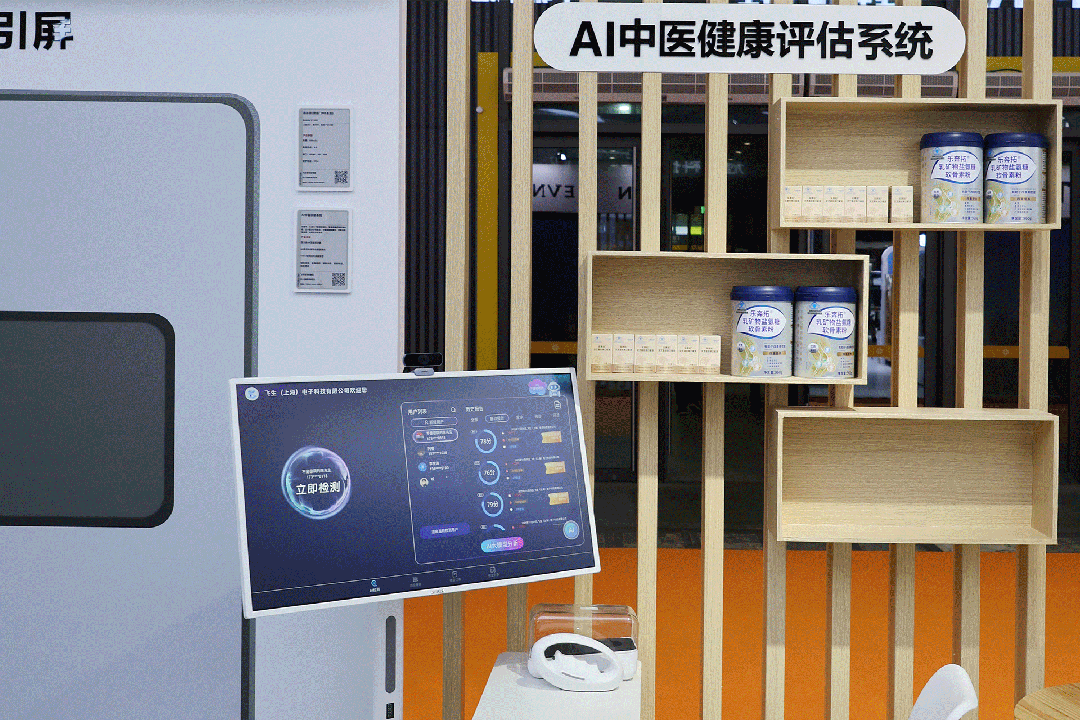 智慧医疗展区呈现AI中医健康评估系统,融合传统中医智慧与现代科技,用户通过手持检测设备与交互操作,可在飞利浦商显终端上查看健康评估参考,展现科技在健康管理领域的辅助价值。