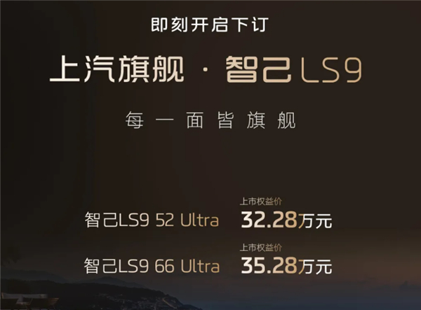 相比之下,智己 LS9 一共是2款车型,分别是 32.28 万的 52 Ultra,35.28 万的 66 Ultra。