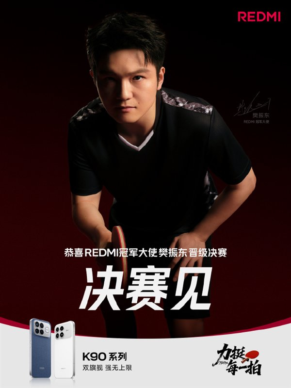 值得一提的是,樊振东目前正担任着 REDMI 冠军大使一职。
