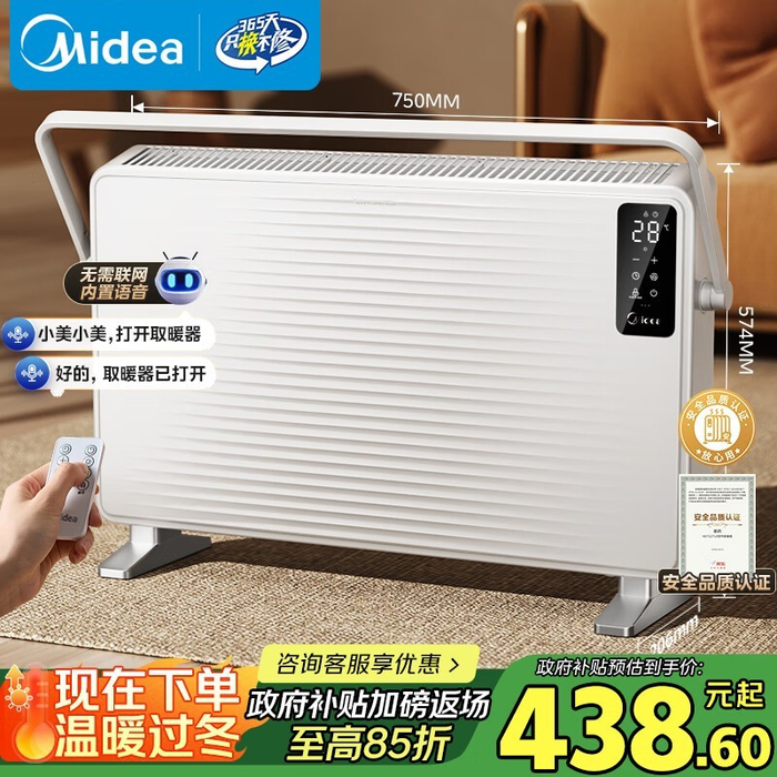美的石墨烯语音电暖器特惠,到手仅 516 元!