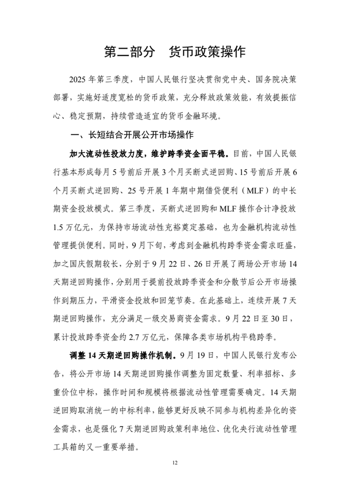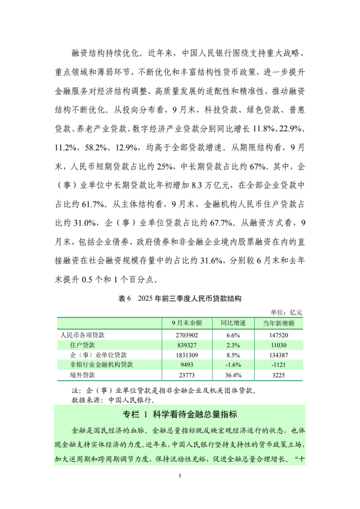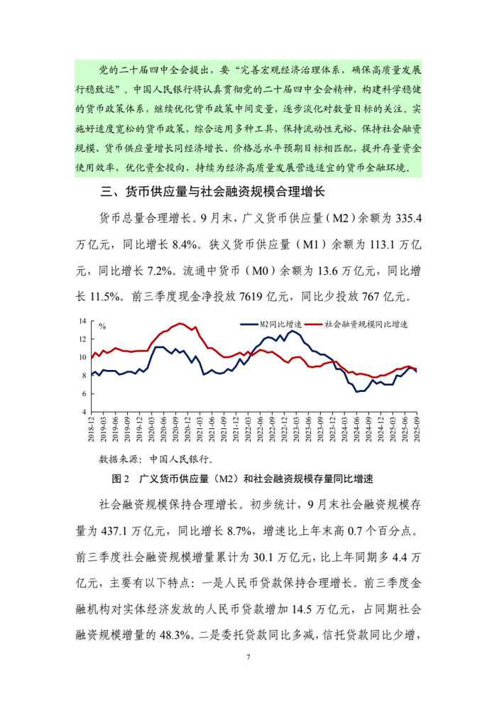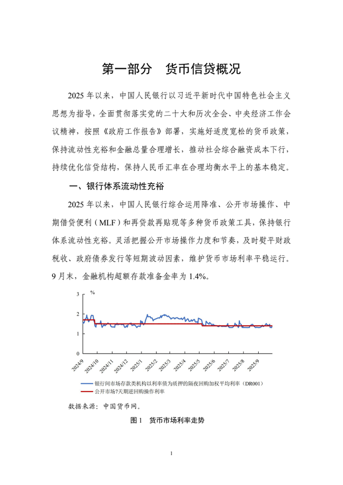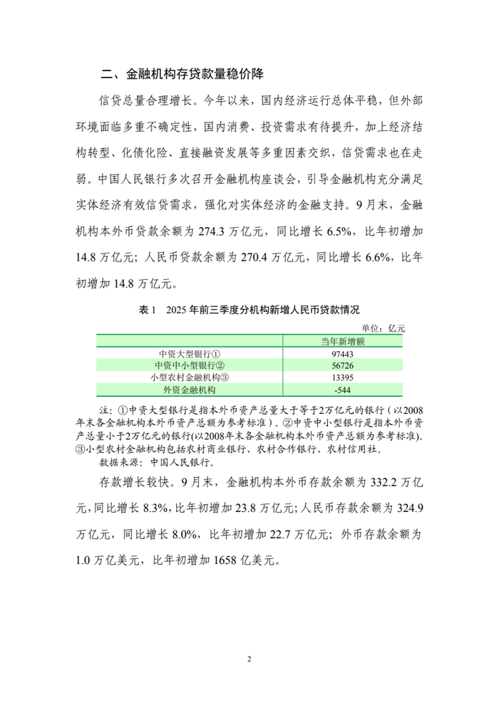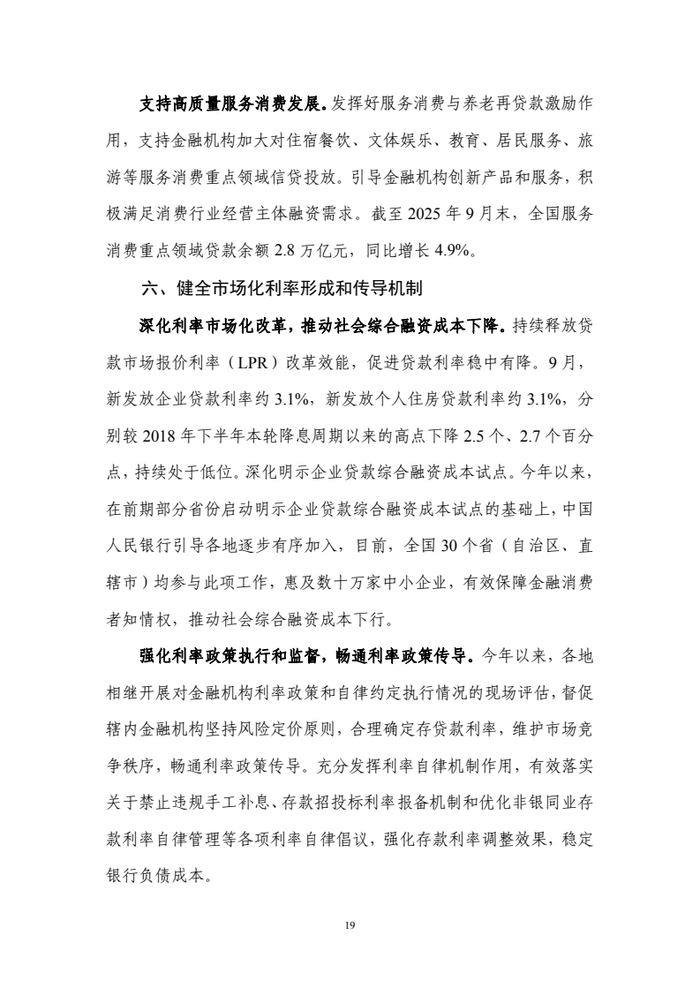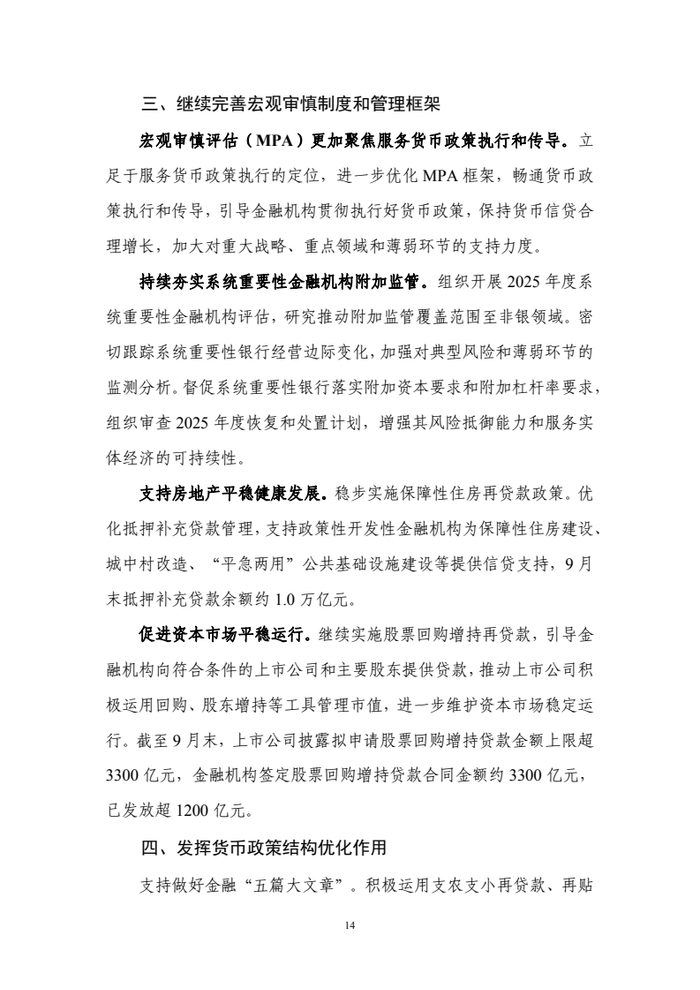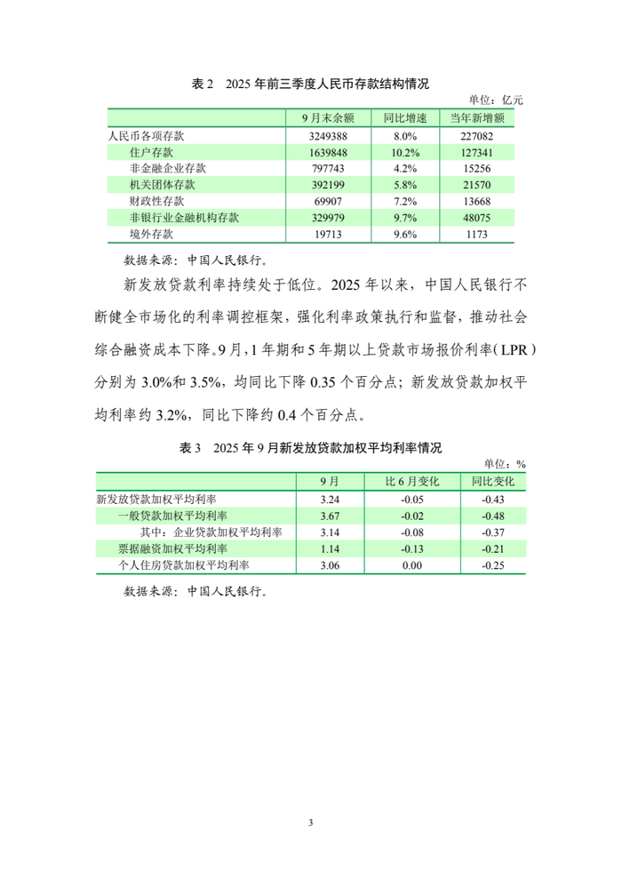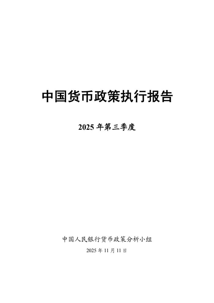 中国人民银行:2025年第三季度中国货币政策执行报告