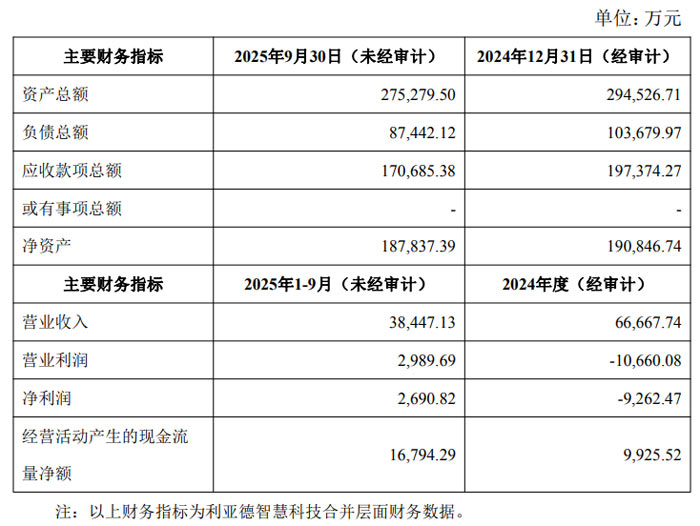 利亚德智慧科技最近一年一期的财务指标