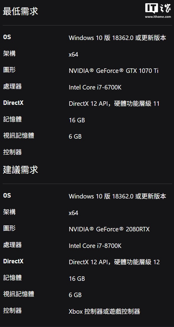 根据商店详情页可以看到,本作体积为 53.25GB,支持 Play Anyware,购买一份游戏即可在 Xbox 和 PC 平台随处游玩,PC 平台最低配置要求酷睿 i7-6700K 处理器、RTX 1070 Ti 显卡,推荐 i7-8700K 处理器、RTX 2080 显卡。