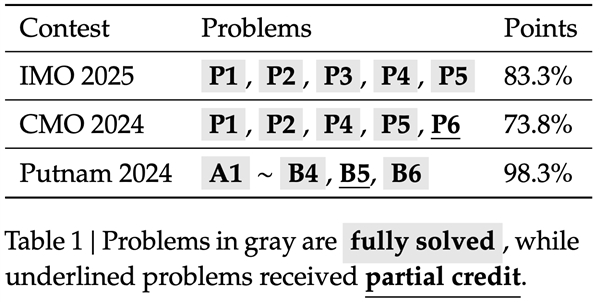 这款模型强在哪里?先说结果,在IMO 2025和CMO 2024中均达到金牌水平,Putnam 2024获118/120分。