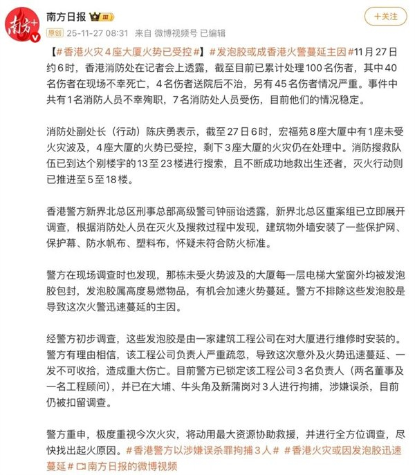 唉,说实话,隔着屏幕,那冲天的火光都让人感到非常窒息,这是近几十年香港最大的火灾事故了。