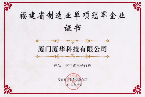 近日,福建省工业和信息化厅公布制造业单项冠军企业(产品)复核结果,厦门厦华科技有限公司(以下称PRIMA厦华)核心产品——交互式电子白板,凭借其领先的技术实力与市场地位,成功通过严格审核,再度蝉联“福建省制造业单项冠军产品”荣誉。这不仅是对一款产品的肯定,更是对PRIMA厦华坚持自主创新、深耕专业显示赛道的战略认可,标志着我们在细分领域构筑的技术壁垒与品牌护城河再次获得权威背书。