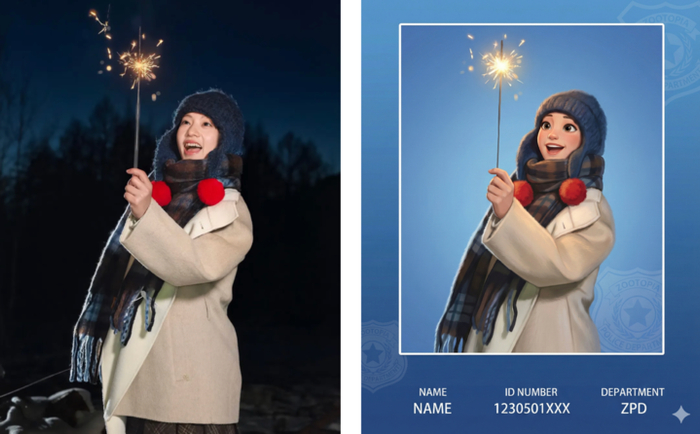 保持人物可识别性及自然肤色,仅添加与《疯狂动物城》宣传画一致的轻度艺术化处理。