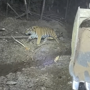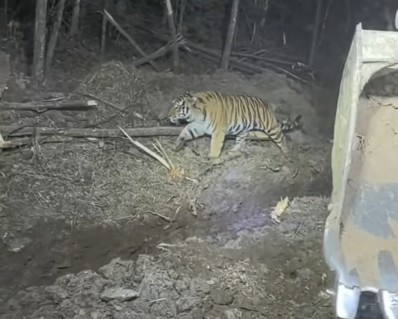 挖掘机女司机夜间作业偶遇东北虎:气定神闲 丝毫不怕人