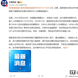 2025 年 11 月,国家税务总局北京市税务局第三稽查局依据《中华人民共和国税收征收管理法》《中华人民共和国个人所得税法》《中华人民共和国行政处罚法》等相关法律法规规定,对其作出追缴税款、加收滞纳金并处罚款共计 247.48 万元的处理处罚决定。目前,涉案税款、滞纳金及罚款均已追缴入库。