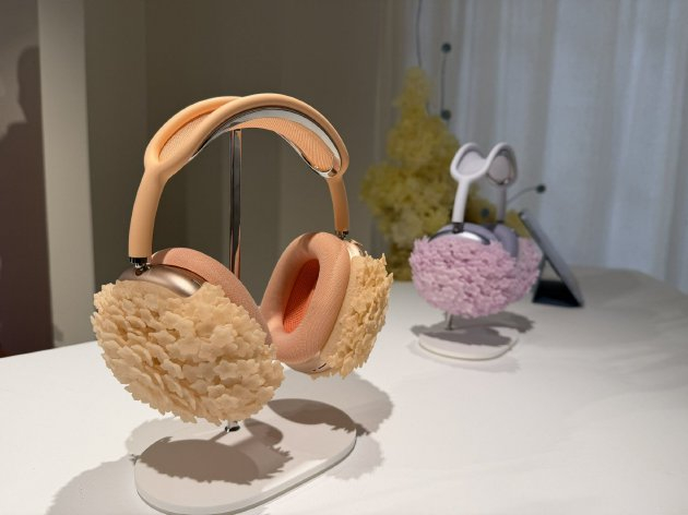 在上海一条弄堂里, Susan展现了科技与艺术的结合形态,展台上的 Apple 产品配件,是这场 “科技自然化” 的最佳注脚:Flower iPhone 保护壳带着 “有机形态” 的舒展,Mushroom Mac mini 外壳像森林里的苔藓般柔软,Air-Bloom Apple Watch 表带则把 “生长感” 织进了穿戴体验里。
