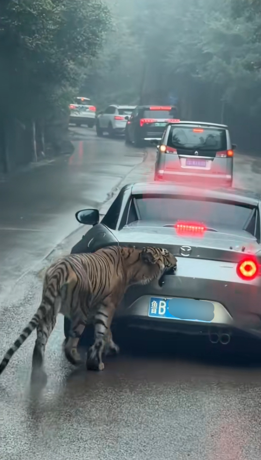 另外,针对部分网友的质疑,当事网友回应称,车上没有放任何食物,可能当时就她的车最小,老虎比较感兴趣。