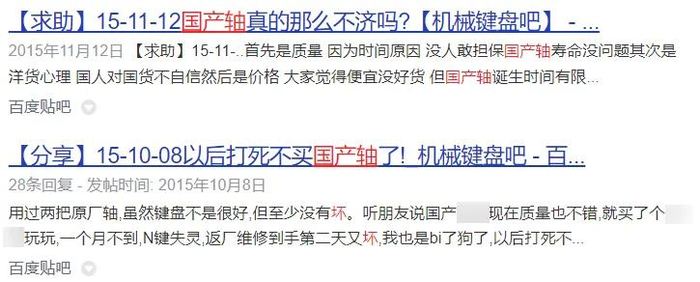 这些反馈最后汇聚成了这样一句话:“国产轴便宜,但坏很快,寿命短”。