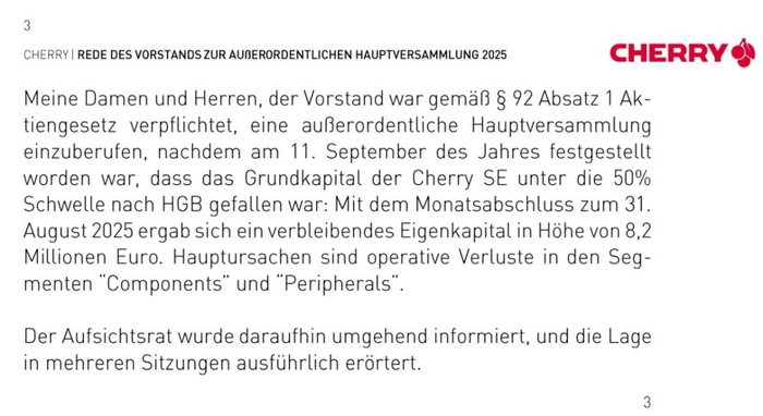 因为Cherry SE股本亏损直接到了50%的警戒线以下,造成这一情况的主因,正是组件跟外设板块的经营亏损。