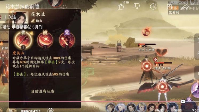 二技能有30%几率在被攻击时触发一技能,但实际作用有限。通常敌方遇到带被动的单体输出角色不会优先选花木兰,最多被群体攻击时顺带触发。且此被动释放的一技能无法激活曹植、魏征的追击效果。