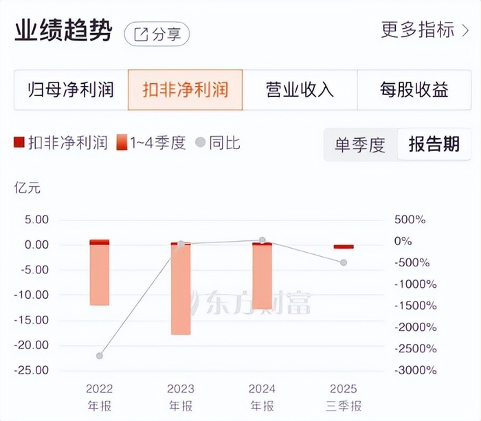 2022年至2024年,海王生物连续出现亏损,分别亏损10.27亿元、16.90亿元、11.93亿元,累计亏损达到39.1亿元。2025年前三季度,该公司实现归母净利润2570万元,同比下降44.39%;扣非归母净利润仍然亏损7760万元。