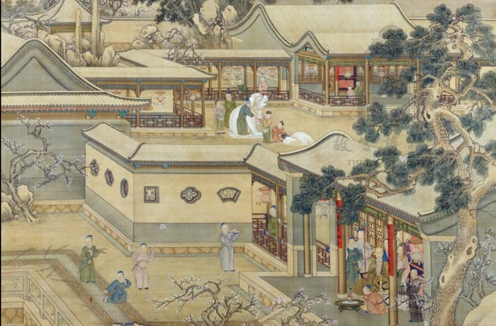 《乾隆帝岁朝行乐图》轴(局部),(清)乾隆 丁观鹏 郎世宁等绘。