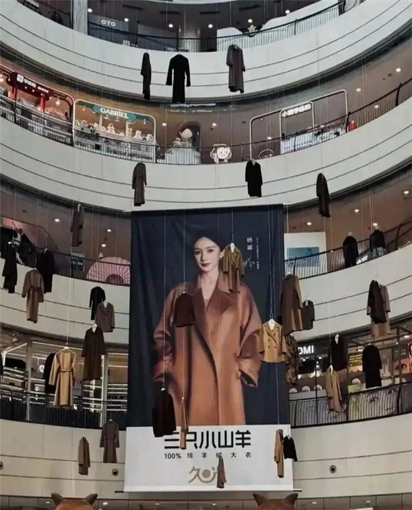 上海一商场悬空挂数十件大衣+杨幂海报 被指气氛诡异骇人 最新回应:已撤下