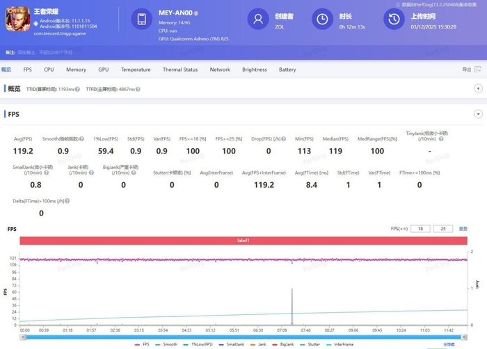 性能方面,荣耀500 Pro搭载骁龙8 Elite芯片,荣耀500则配备骁龙8s Gen4,均属各自层级的顶级水准。配合幻影引擎3.0技术,针对高负载场景进行渲染优化,实测王者荣耀全程稳定输出,平均帧率达119.7帧,游戏体验流畅无卡顿。