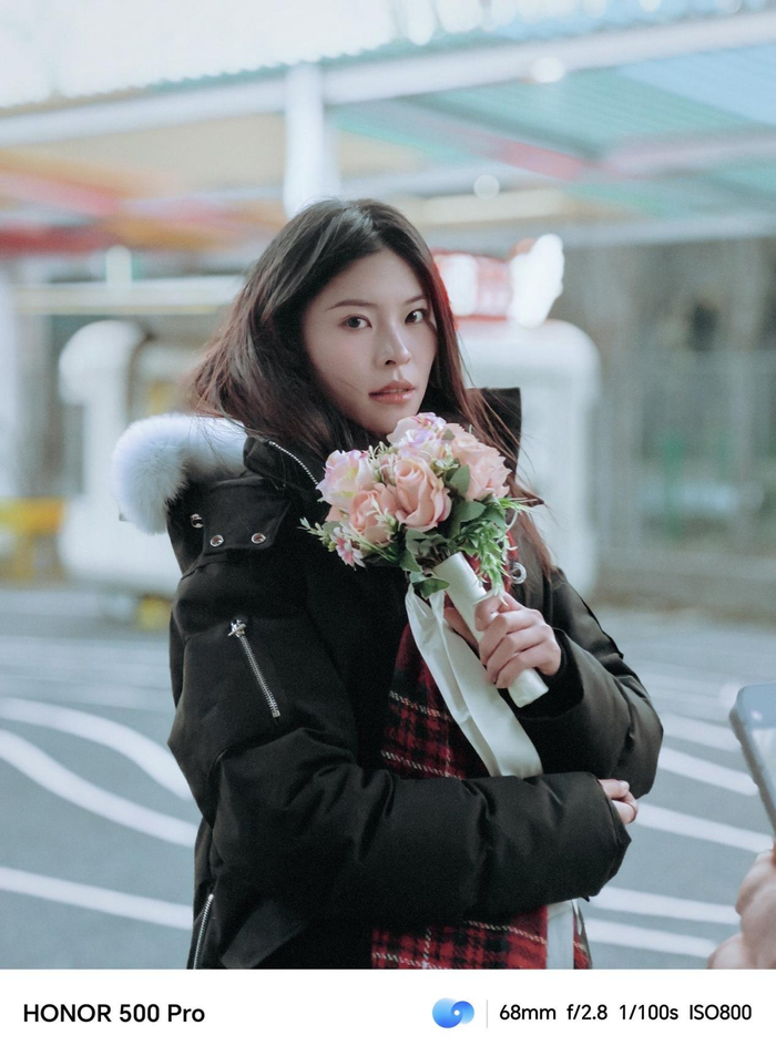 荣耀500系列延续了品牌多年来在人像美学上的积累:从早期追求空气感的光影层次,到如今融合雅顾摄影理念的AI美学算法,成片风格兼具专业性与普适美感。肤色还原不过白不偏黄,保留适度肤质细节,妆容清晰锐利却不生硬;背景虚化模拟光学镜头渐进式模糊,主体突出却不孤立。