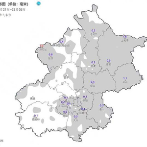 这场雪有多大?据统计,延庆、平谷、密云山区局地小到中雪;全市平均降雪量为0.3毫米,城区平均降雪量为0.2毫米,城区及平原大部分地区积雪深度不足1厘米,最大降雪量出现在延庆区小海陀站,为3.3毫米,山区局地积雪深度1~3厘米。