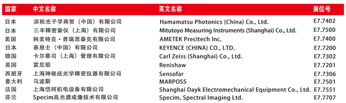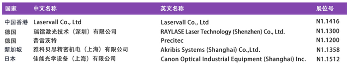 仅罗列部分,更多展商及展品请至慕尼黑上海光博会在线会刊