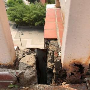 2018年7月,事发教学楼锈蚀的栏杆。受访者供图