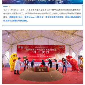 IT之家 12 月 25 日消息,据“上海临港”公众号消息,今天(12 月 25 日)上午,入选上海市重大工程项目的“数字光源芯片先进封测基地项目”在临港新片区正式动工。