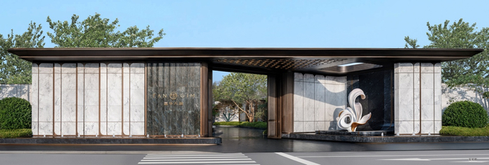 以位于北京海淀区的保利·建工·嘉华天珺为例,其设计以“名门学府,金玉满堂”为主题,结合海淀的山河、人文、学院等在地特征,将千年“美玉”的东方文化语言,设置“玉树,玉璧、玉匣、玉宇、玉盘、玉阶、玉阁、玉带”8大节点,串联迎宾大道、社区大门、名仕会所、景观步道、归家大堂等多个景观,为海淀敬呈海派式生活范本。