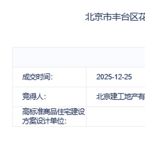 12月25日,丰台区花乡街道0001地块(下称“花乡地块”)以平淡收场,为2025年北京土地市场画上句号。该地块由北京建工联合城乡开发以底价24.72亿元斩获,成交楼面价4.2万元/平方米。