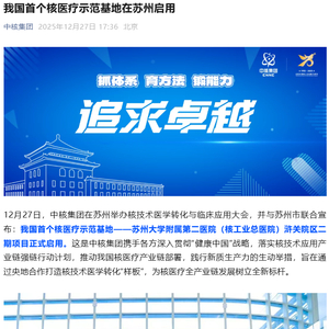 IT之家 12 月 27 日消息,今日,中核集团在苏州举办核技术医学转化与临床应用大会,并与苏州市联合宣布:我国首个核医疗示范基地 —— 苏州大学附属第二医院(核工业总医院)浒关院区二期项目正式启用。