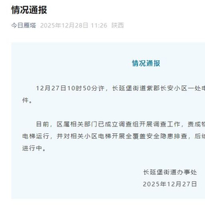 新京报讯 据今日雁塔消息,12月27日10时50分许,长延堡街道紫郡长安小区一处电梯井发生一人死亡事件。