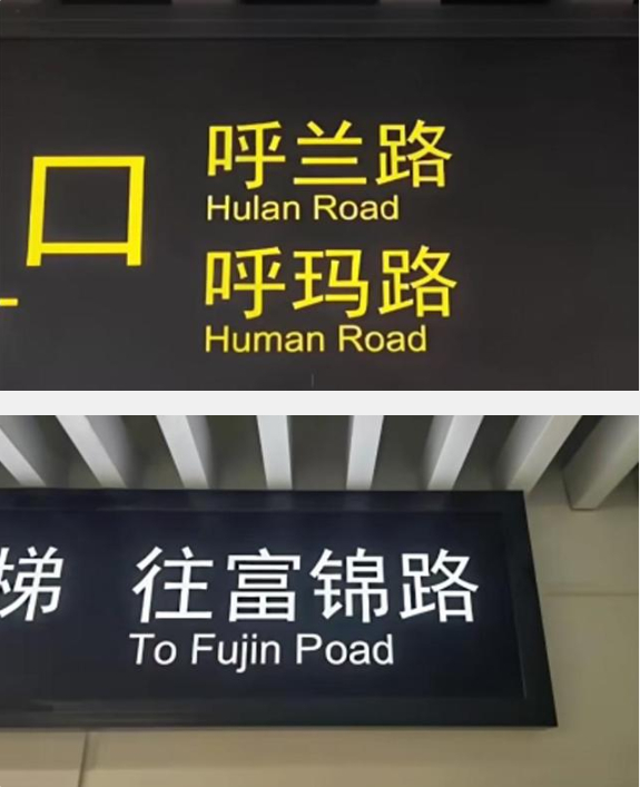 上海地铁新站标识闹乌龙!呼玛路变“Human Road”
