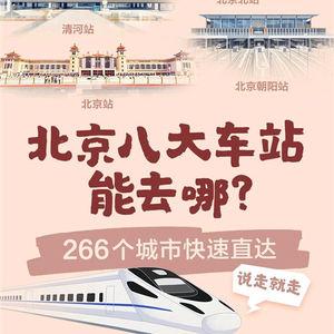 作为全国铁路网的中心,从北京出发,可以直达全国多达266个不同城市,八大火车站都有直达的列车,而且在不同方向上各有分工。