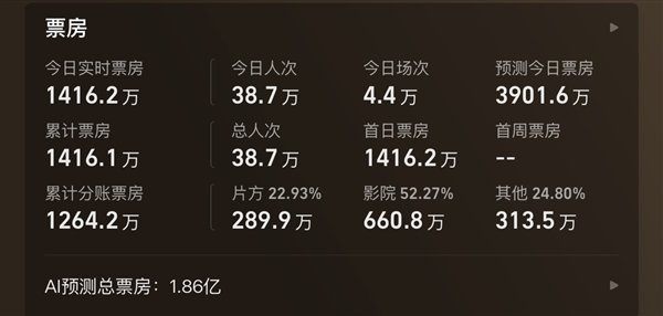 灯塔专业版数据显示,AI预测该片总票房为1.86亿元。