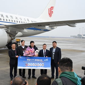 12月31日上午,从北京起飞的国航CA4182航班平稳降落在成都双流国际机场,来自电子科技大学的科技工作者姜辉作为成都国际航空枢纽今年第9000万名旅客,见证了这一历史性时刻。
