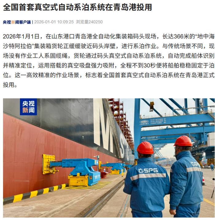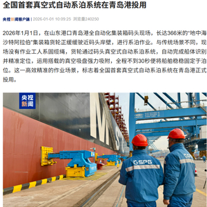 全国首套真空式自动系泊系统青岛港投用,30 秒完成船舶固定
