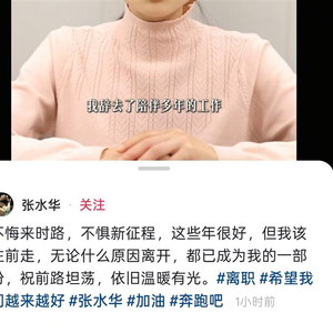 视频中她表示,认真思考了很久后,决定辞去陪伴多年的工作。特别感谢医院的培养、领导的信任,还有同事们的包容与支持。