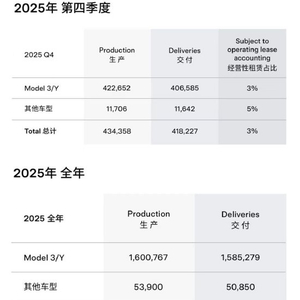 特斯拉发布2025年全球生产与交付报告:全年生产165.5万辆,交付163.6万辆