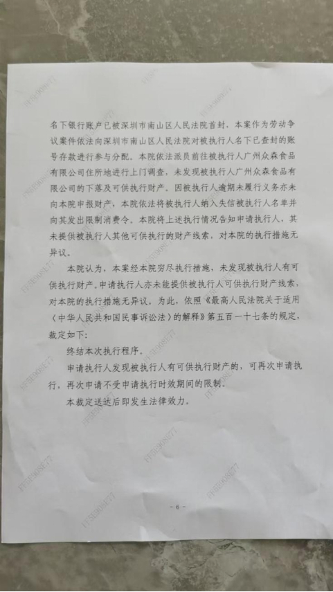 近日,一则来自法院的“终本”通知,让茶里讨薪员工的希望再次落空。执行裁定书显示,经法院调查,茶里旗下的广州众森食品有限公司(以下简称“众森食品”)无可供执行的财产,因此终结执行程序。这意味着,员工们通过法律途径追讨欠薪的努力暂时陷入了僵局。