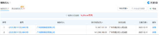与此同时,2025年12月,广州茶里集团有限公司在多宗新增的执行案件中成为被执行人,其中一宗案件中执行标的金额多达1.41亿元。同样在去年,多家茶里关联公司已经成为失信被执行人,茶里创始人谭琼也被限制高消费。
