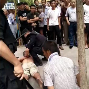 案发后,王爱武(趴在地上者)当场被捕。受访者供图