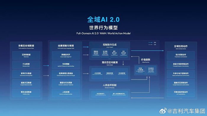 据介绍,G-ASD 采用端到端模型架构,融合多模态基座模型、视觉语言模型(VLM)、视觉语言动作模型(VLA)、世界模型及强化学习等前沿 AI 技术范式,旨在实现从数据系统、感知规控到评测体系的全局模型化驱动,逐步降低对于人工地图与预设规则的依赖。