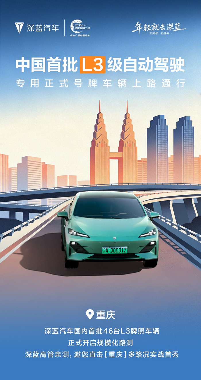 2025 年 12 月 15 日,长安汽车旗下深蓝汽车产品获批搭载 L3 级自动驾驶功能的智能网联汽车产品准入许可(首批仅包含两家车企,长安深蓝、北汽极狐两款车入选),可以实现在交通拥堵环境下高速公路和城市快速路单车道内的自动驾驶功能。