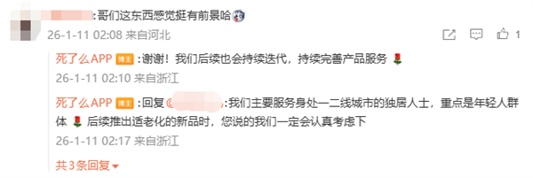 今天凌晨,死了么App官微发文表示:“承蒙厚爱,感谢每一位网友的支持与传播,让我们的声音得以触达千万用户。后续,我们将继续打磨细节,用更完善的技术与服务,守护每一位独居者的平安。”
